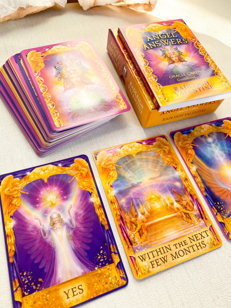Bộ bài 44 lá xinh đẹp chứa đựng những thông điệp của các thiên thần đến từ sự kết hợp giữa tác giả Radleigh Valentine cùng với họa sĩ Marius Michael-George đầy tài năng. Có đôi khi bạn không cần những lời khuyên dài dòng, đòi hỏi bạn phải suy ngẫm để có được câu trả lời mà chỉ đơn giản cần một câu trả lời ngắn gọn. Thì đây, phiên bản mới nhất của Angel Answers Oracle chính là lựa chọn hoàn hảo cho bạn.