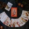 Autumn’s Embrace Lenormand của họa sĩ bán chạy Irene Captijn mê hoặc người xem bằng bảng màu dịu dàng, tinh tế và ấm áp. Những minh họa được thể hiện đầy trân trọng, lưu giữ tinh thần của mùa thu vàng, mang vẻ đẹp tĩnh lặng ấy vào từng lá bài và giúp chúng ta đối diện những thử thách của cuộc sống một cách nhẹ nhàng, dễ dàng hơn.