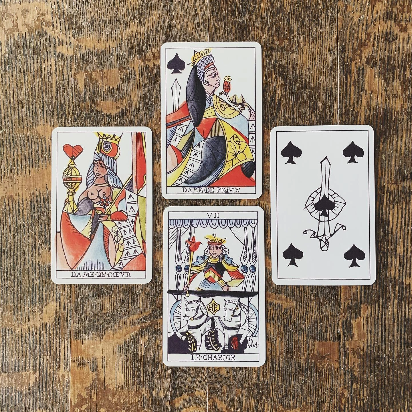 Sách hướng dẫn cũng trình bày cách đọc tarot qua lăng kính của cartomancy với bài chơi cổ điển: