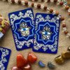 Hộp và bài đều được nhấn nhá bằng chi tiết ánh vàng sang trọng, mặt bài có lớp phủ ngọc trai lấp lánh, mang lại cảm giác cao cấp.
