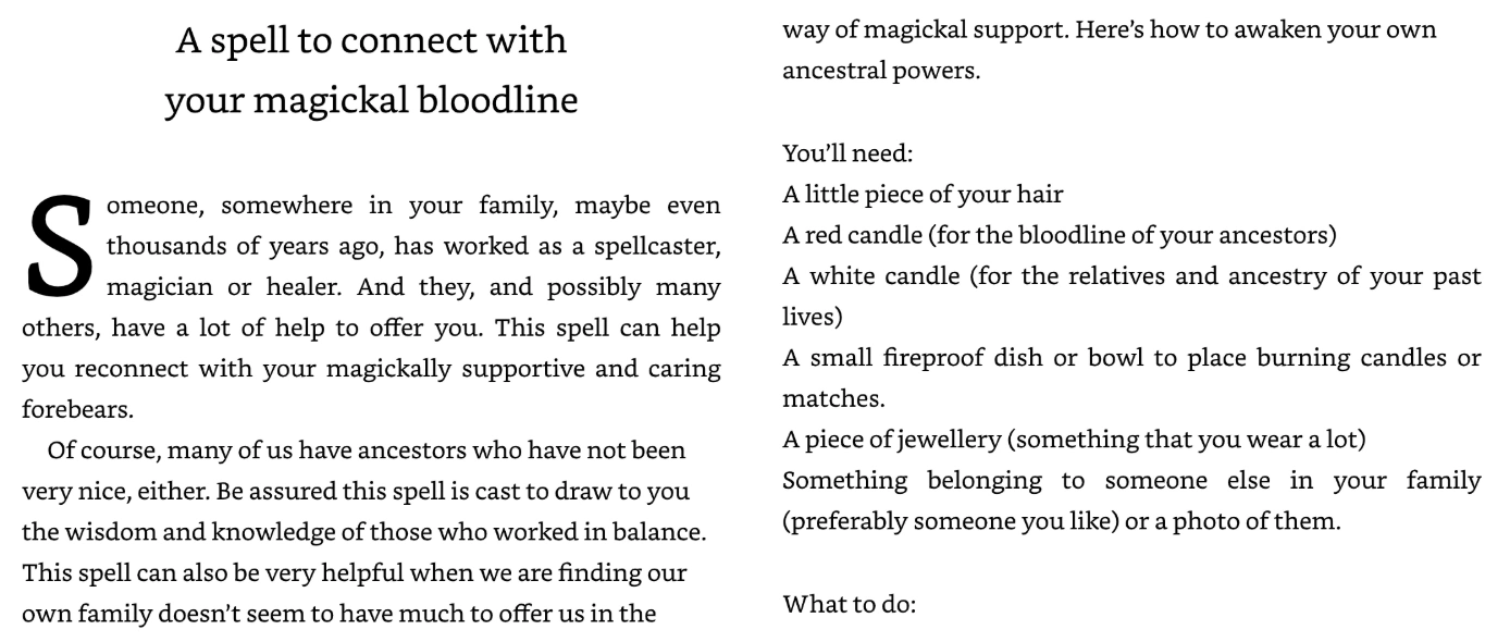 Spellbound giúp bạn kết nối với nguồn ma thuật bên trong và kích hoạt năng lượng biến đổi này. Hãy cùng bước vào hành trình huyền bí với Lucy Cavendish—phù thủy được yêu mến và kính trọng nhất nước Úc. Bà sẽ dẫn dắt bạn vào thế giới bí mật của phép thuật. Cuốc sách này là tập hợp những cách thức và lý do vì sao các câu thần chú có hiệu nghiệm, lịch sử của các nghi thức,  các biểu tượng ma thuật để sử dụng trong nghi lễ của riêng bạn, các trang phục phù thủy, các quy tắc khi thực hiện bùa chú.