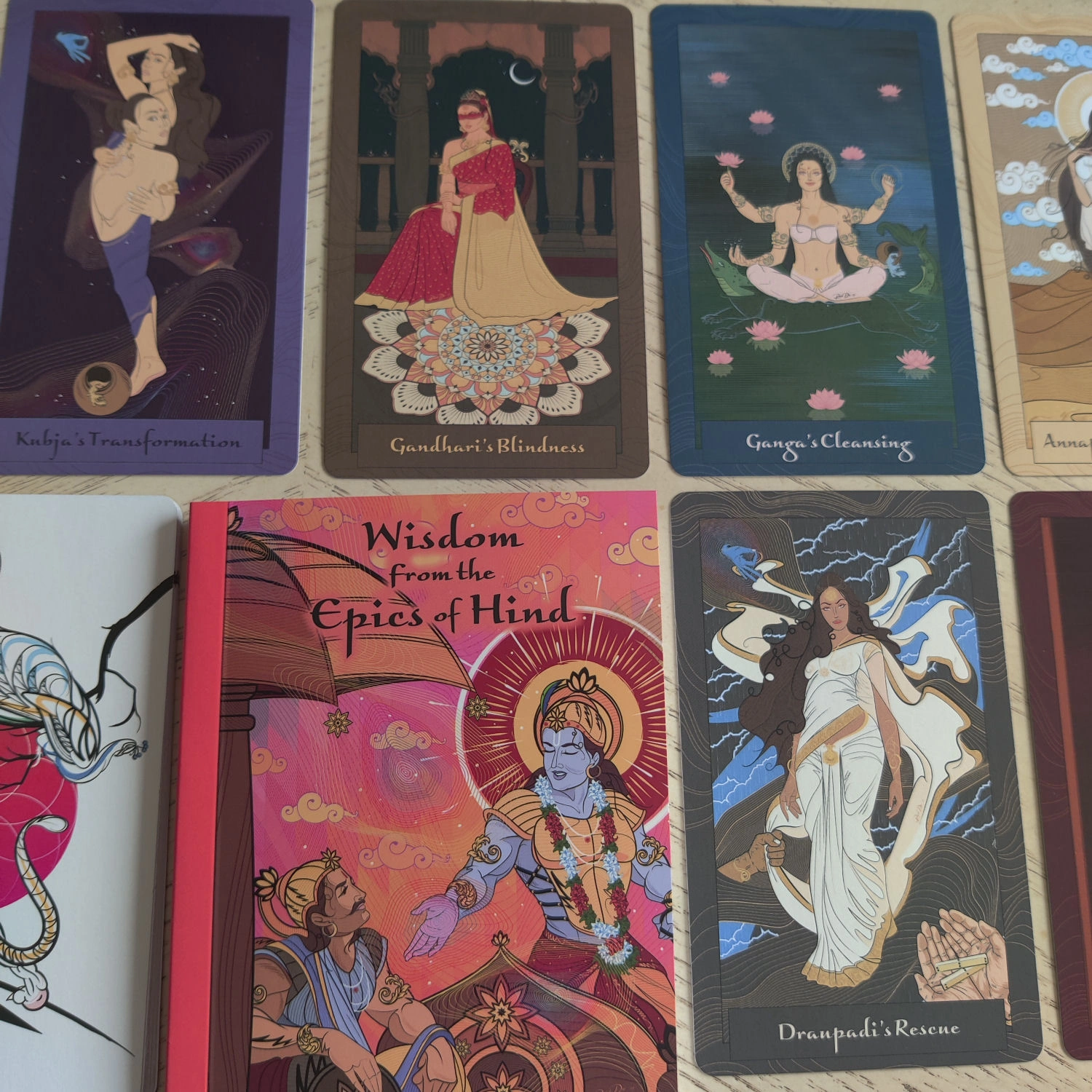 Wisdom from the Epics of Hind là một bộ bài đầy cuốn hút, mang đến những góc nhìn sâu sắc từ các câu chuyện, giáo lý, kinh điển và truyền thuyết Ấn Độ, cùng trí tuệ trích từ hai thiên sử thi Hindu kinh điển: Ramayana và Mahabharata.